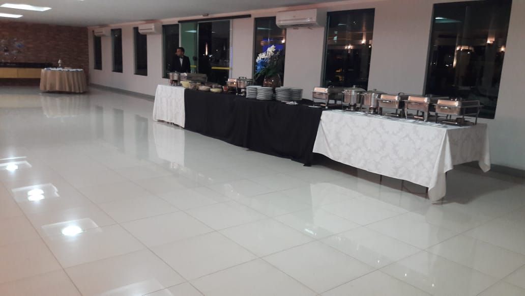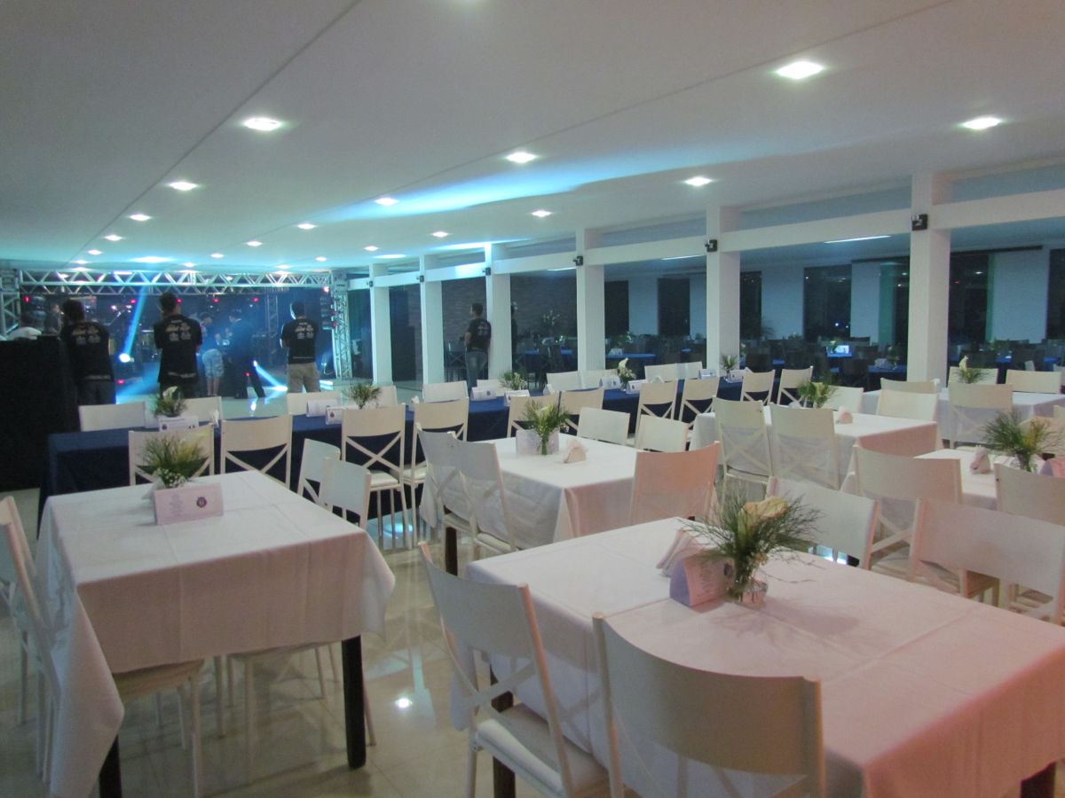 O Salão possui balcões de frios e de servir, copa segregada com geladeira e pia, palco, ar condicionados, túnel de entrada para convidados, área de toaletes, entre outras facilidades.
