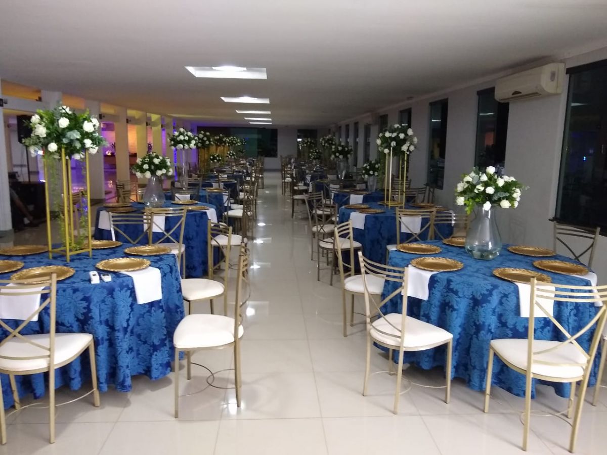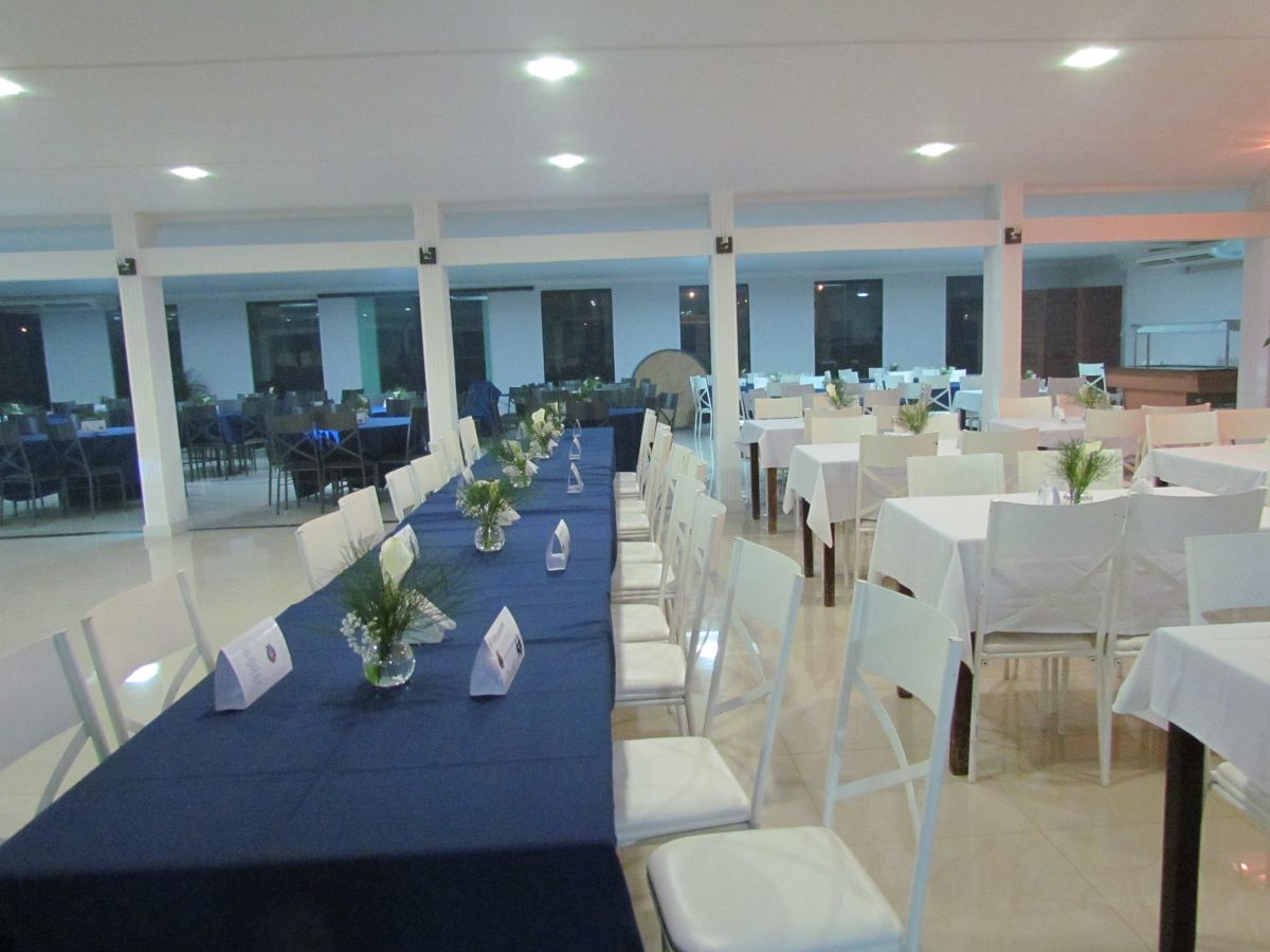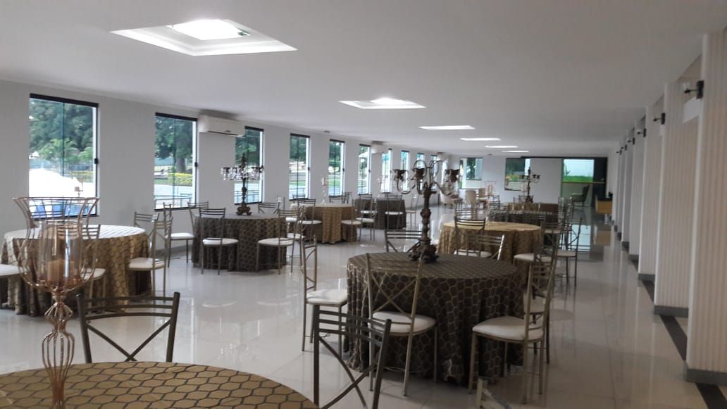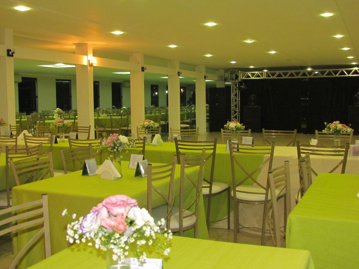 O Salão possui balcões de frios e de servir, copa segregada com geladeira e pia, palco, ar condicionados, túnel de entrada para convidados, área de toaletes, entre outras facilidades.